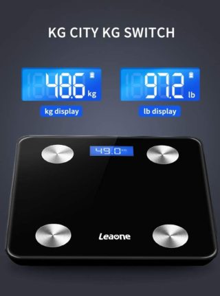 Leaone Body Fat Scale 28x28cm, Blue LCD Display, Smart Bluetooth Digital BMI Weight Scale, Body Composition Analyzer Health Monitor with 6mm Tempered Glass with Smartphone App, 400 lbs, White